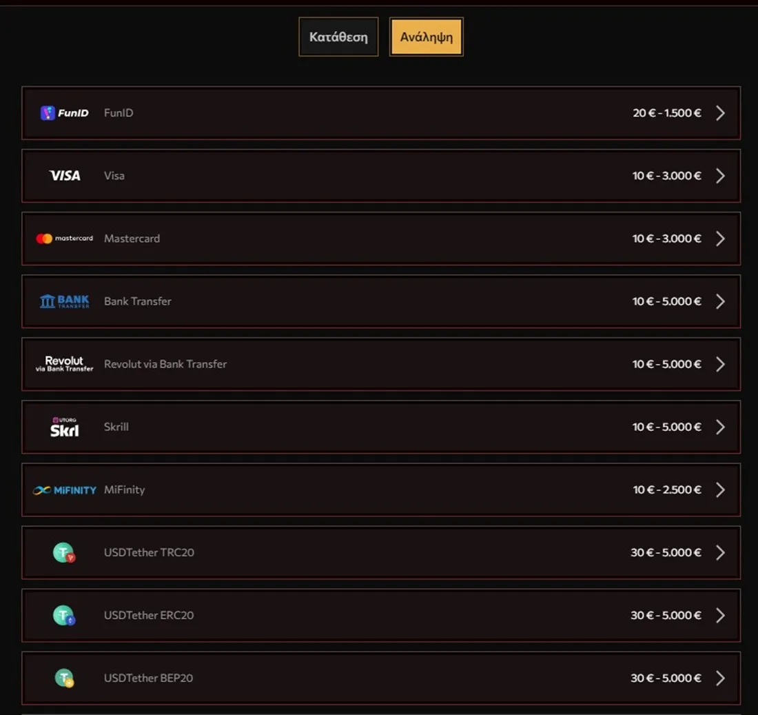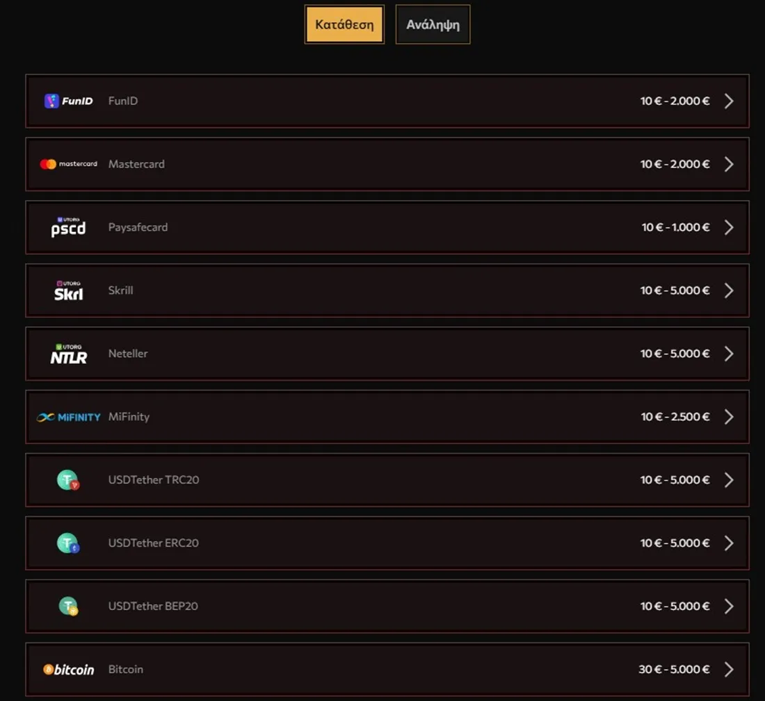 ΠαίξτεΟι μέθοδοι πληρωμής στην Εφαρμογή του Legiano Casino